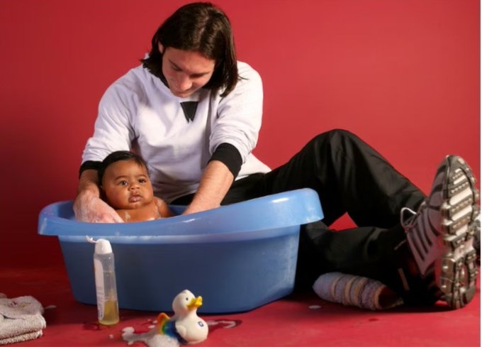 这张图是2007年梅西拍摄《每日体育报》的慈善日历,为亚马尔“洗礼”,当时梅西20岁,而亚马尔还是个婴儿。